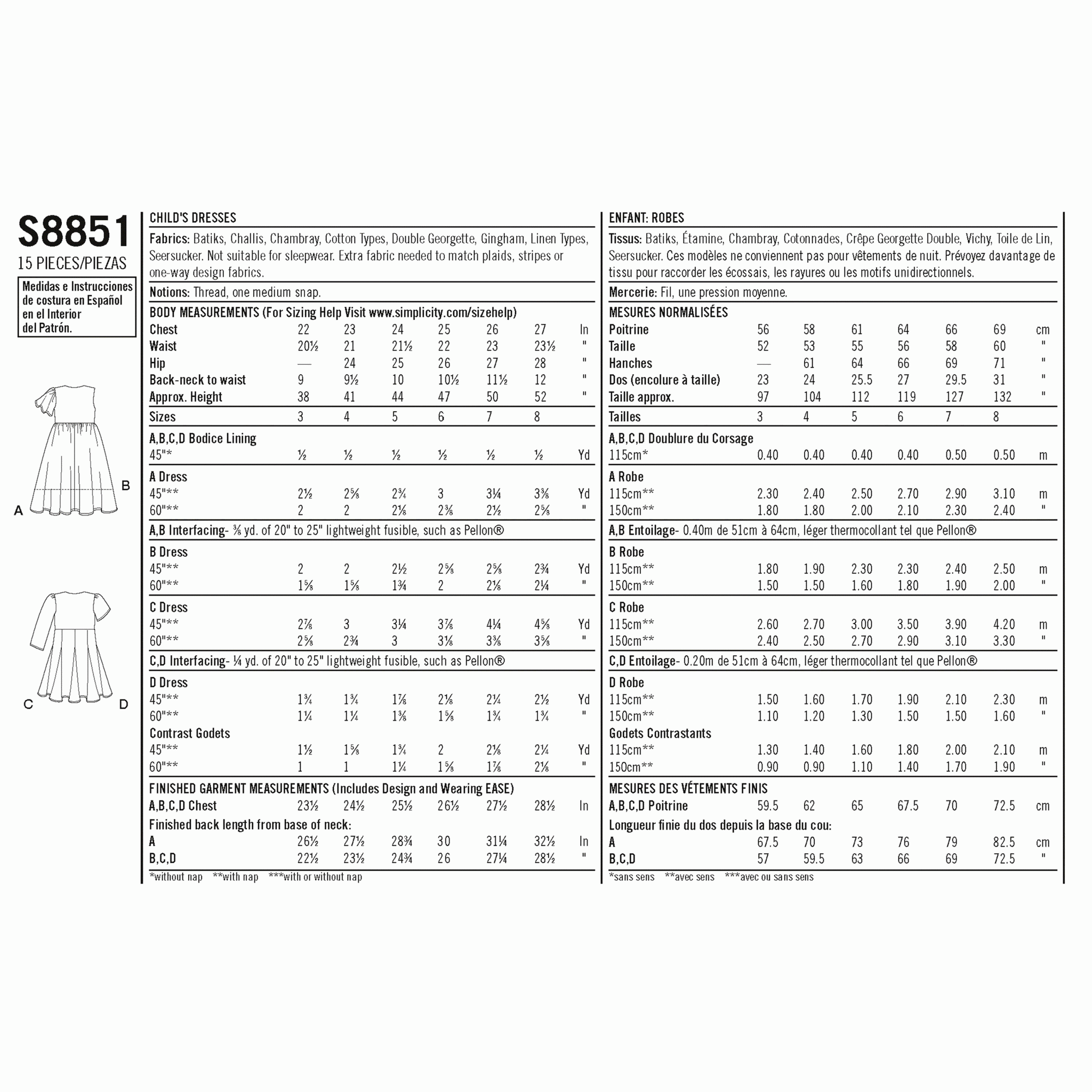 Create the perfect twirl with these adorable dresses for child, sizes 3-8. All views feature wrap design with a full skirt. Dresses include sleeve variations and optional view with contrast godets.