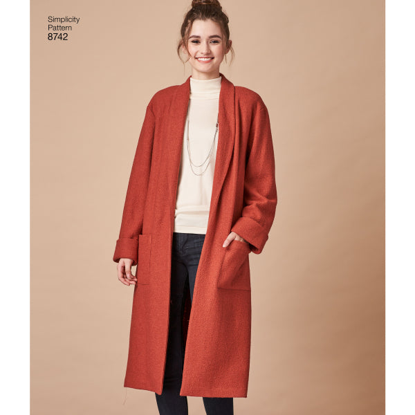 This customizable two length cardigan is the perfect piece to dress any outfit up or down. Suggested fabrics like wool, fleece, and micro suede allow you to achieve that relaxed yet put together look. Keep it simple and sleek with a straight lapel, or add some flare with a cascading one for an effortless ensemble.