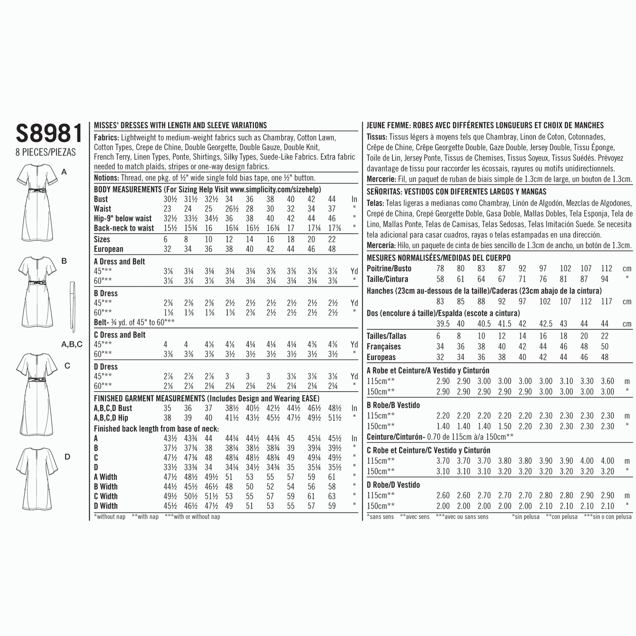 Ladies Dresses Pull-on style with centre front and back seams, fastens at back neck. Obi-style belt. Dress and sleeve length variations. Suitable for light-to-medium weight fabrics