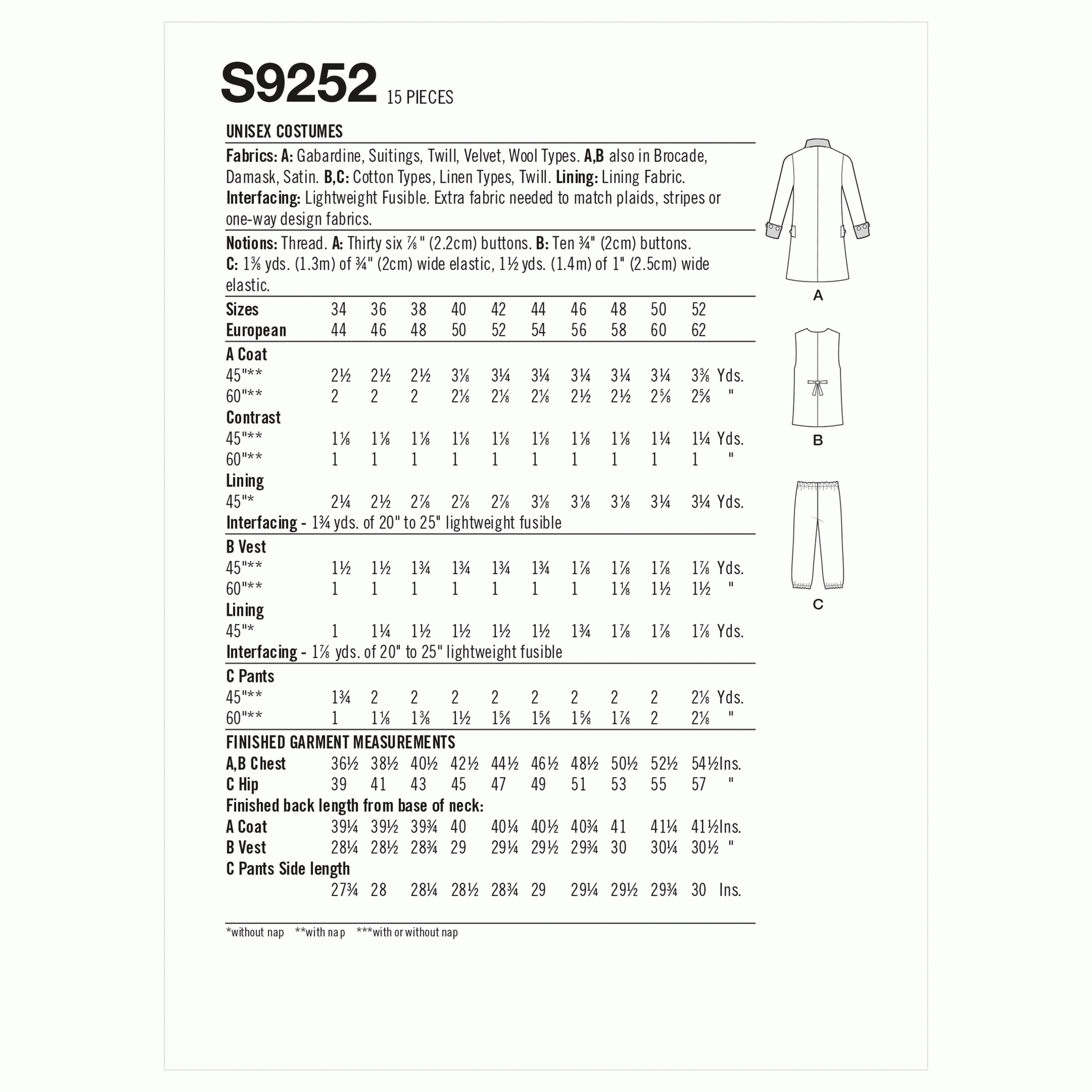 9252 Unisex Continental Uniform Costumes
