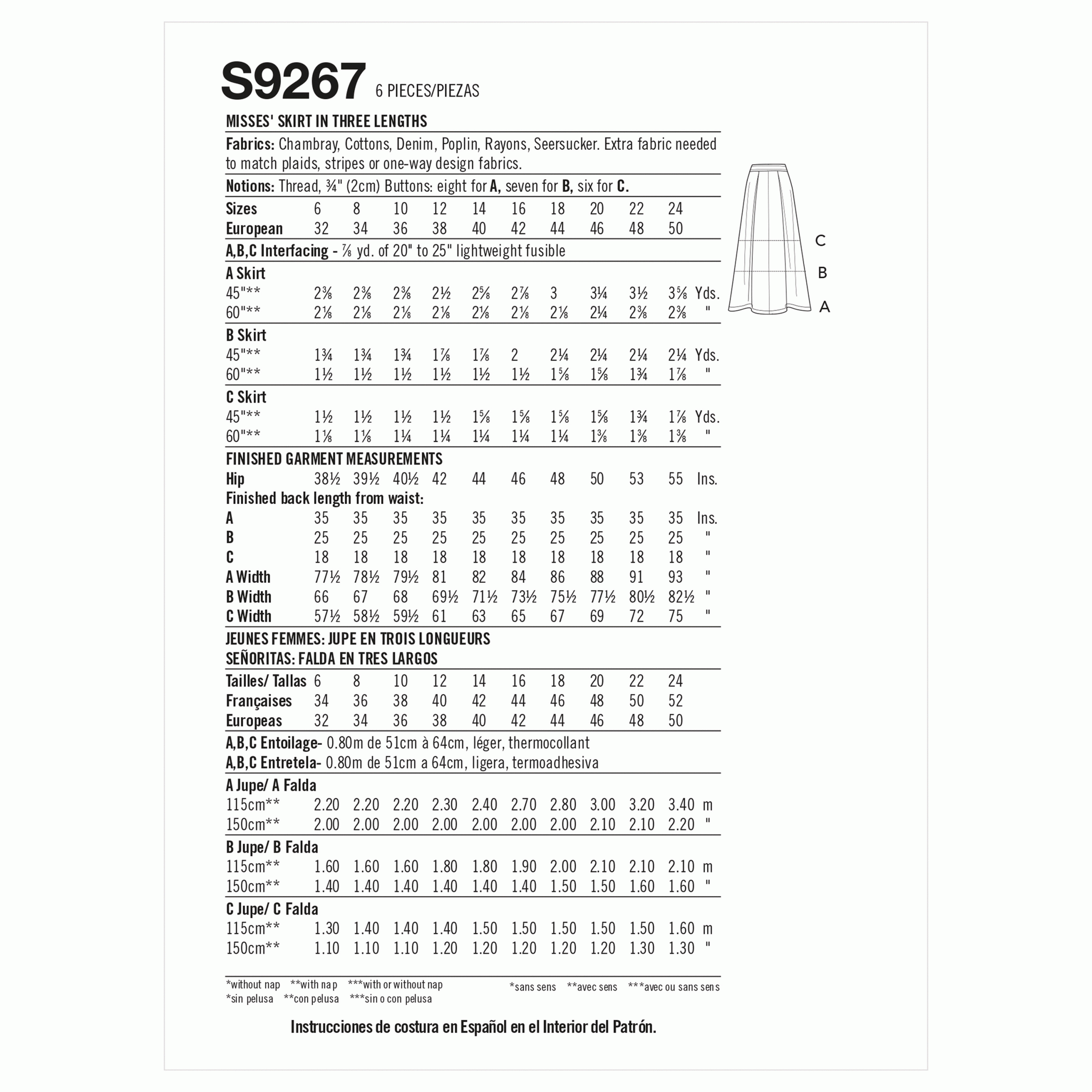 9267 Ladies Skirt In Three Lengths