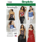 Get a great fit in this Amazing Fit Ladies corset in two styles, both with lace up backs. Pattern includes separate pattern pieces for B,C,D, and DD cup sizes for both miss and plus sizes.