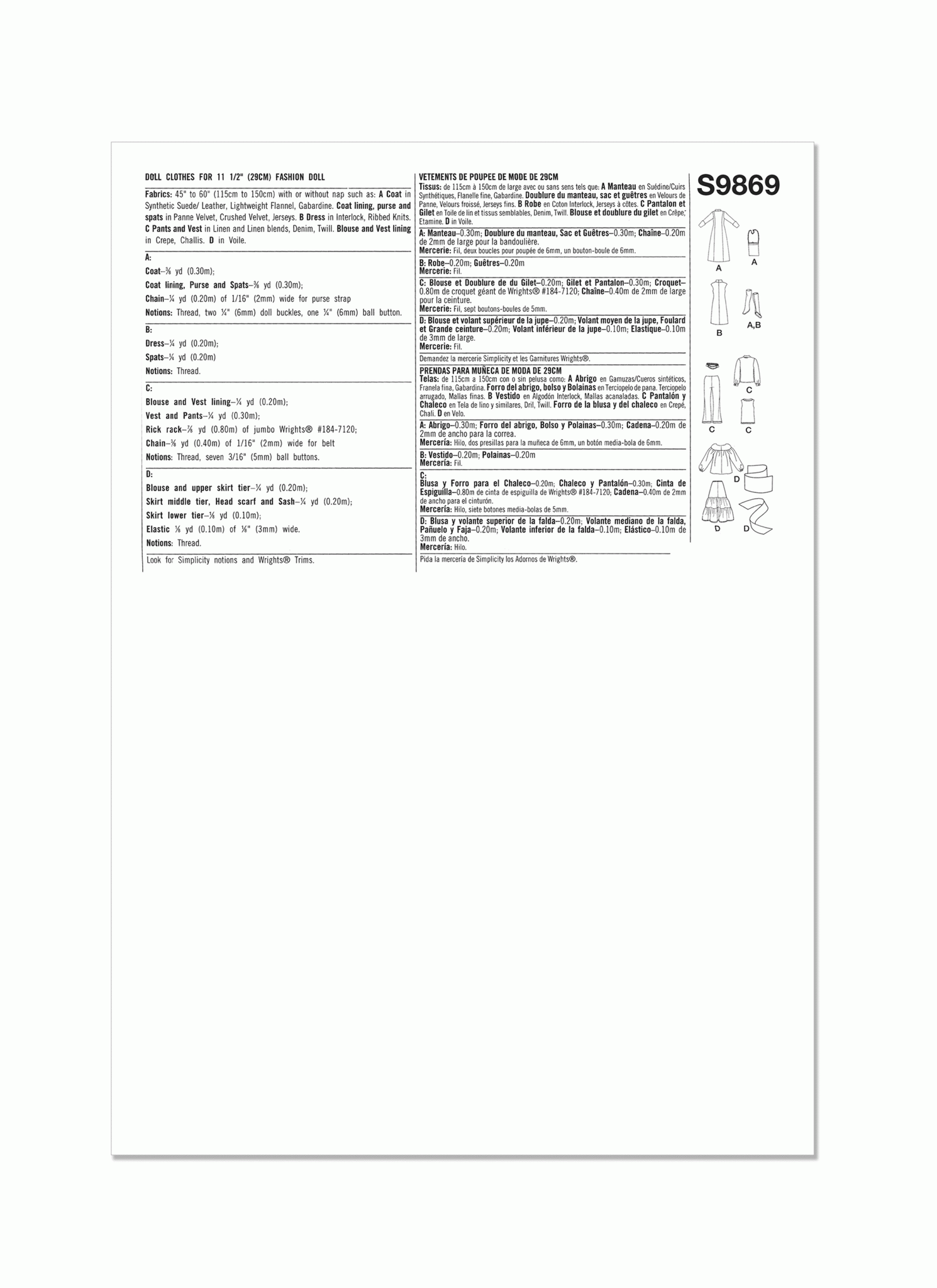 9869 Doll Clothes for 11 1/2" Fashion Doll